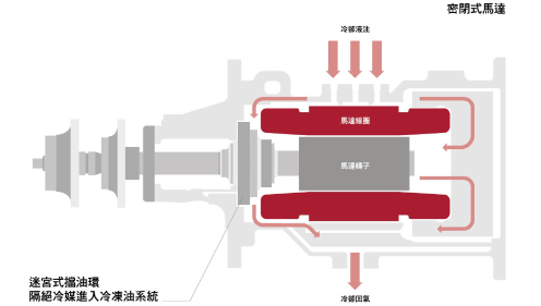 雙段壓縮構造,降低壓縮機的轉速,減少軸承的耗損,從而延長機組的運轉壽命。